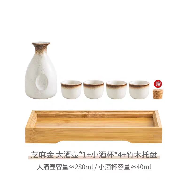 首页 / 餐具 / 酒具 / 酒具套装高端清酒杯陶瓷冬季家用烈酒杯子小酒盅分酒器烧酒温酒器(大号芝麻金酒壶6件套)