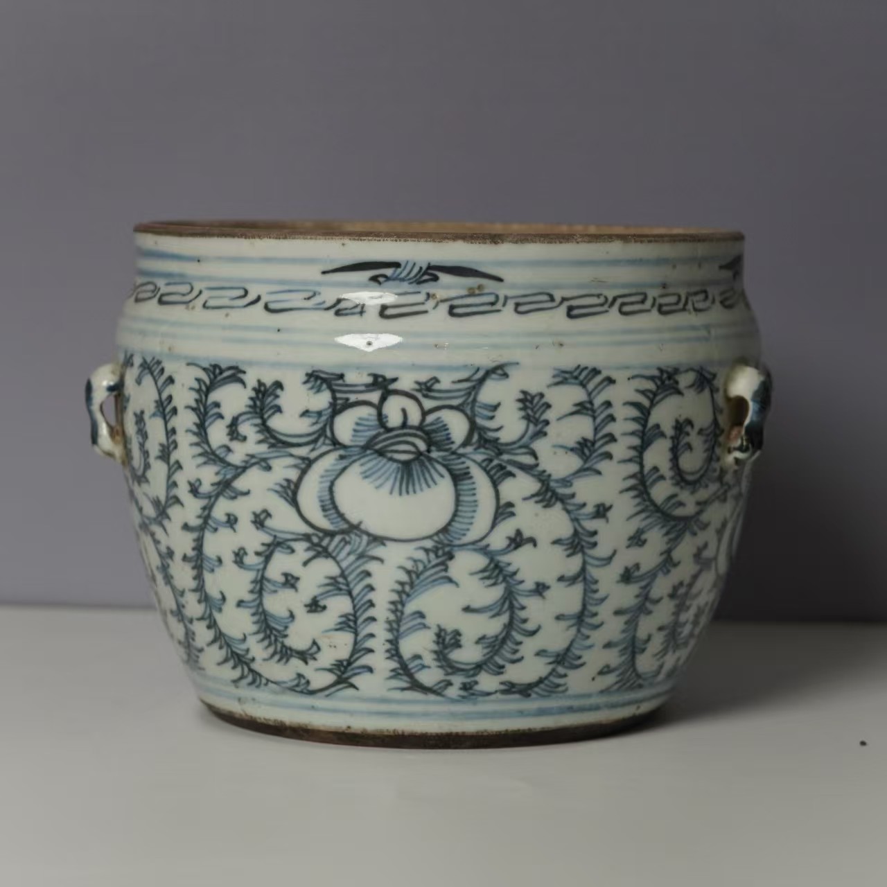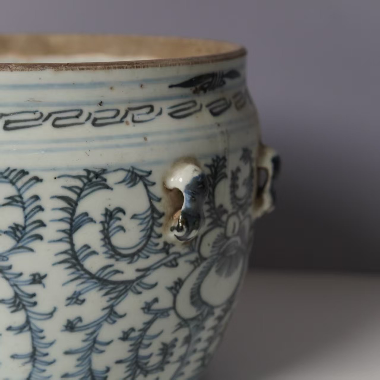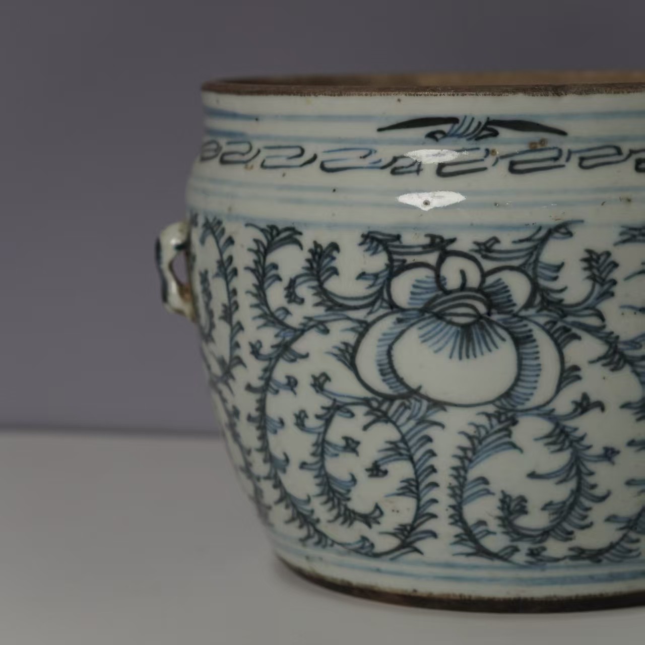 双耳设计:罐身两侧设有双耳,形状类似小环,方便提携搬运 ,同时也增加了器物的装饰性,让整体造型看起来更加协调。