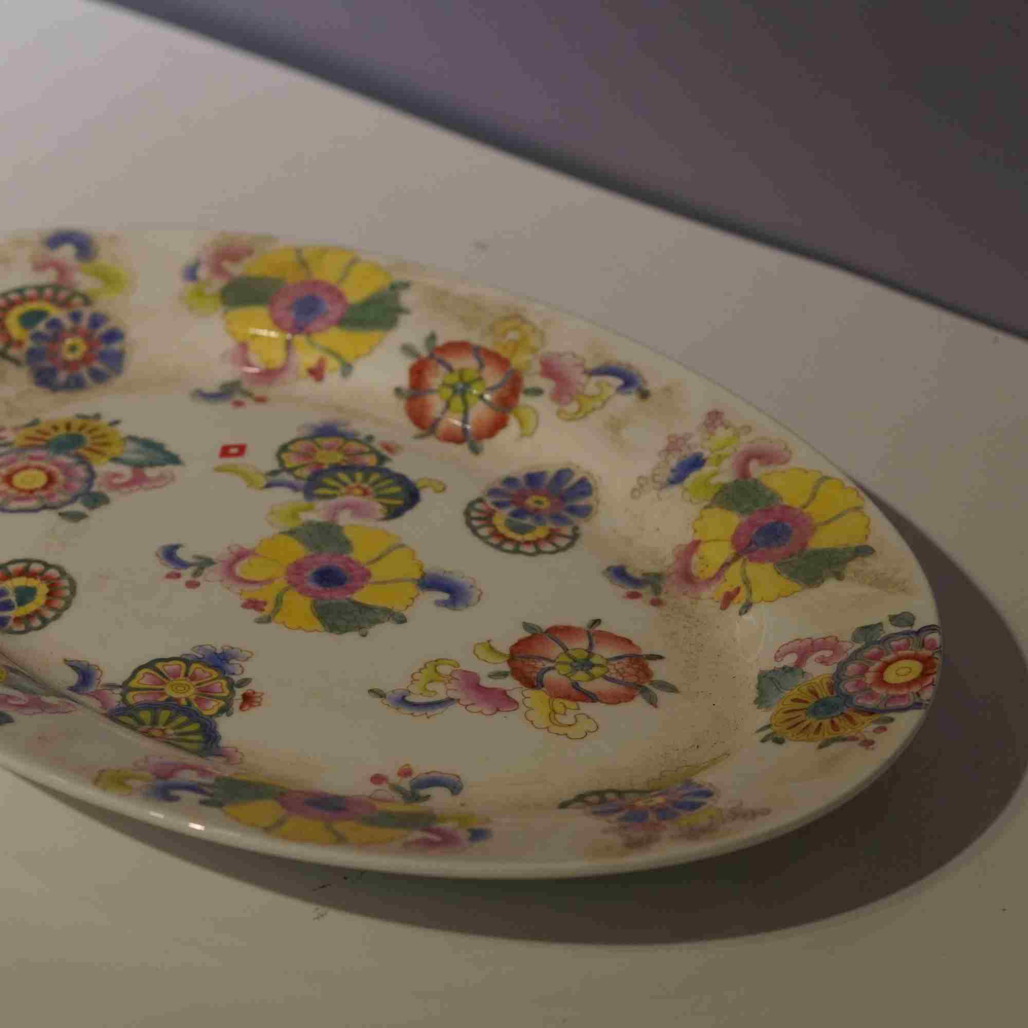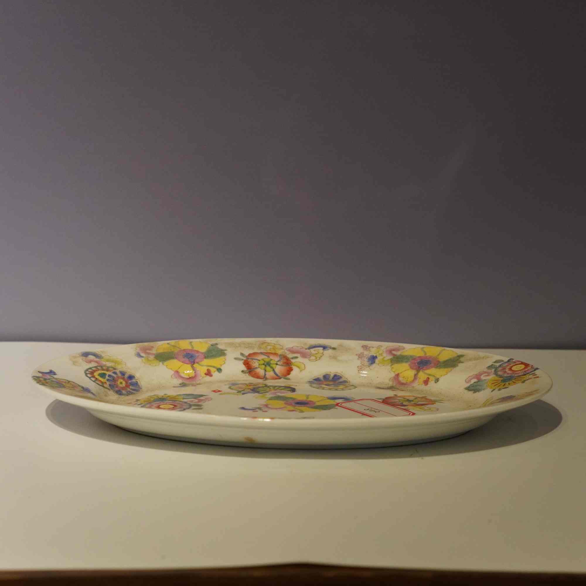 粉彩花卉椭圆盘(长:31cm宽:22cm高:2.5cm)