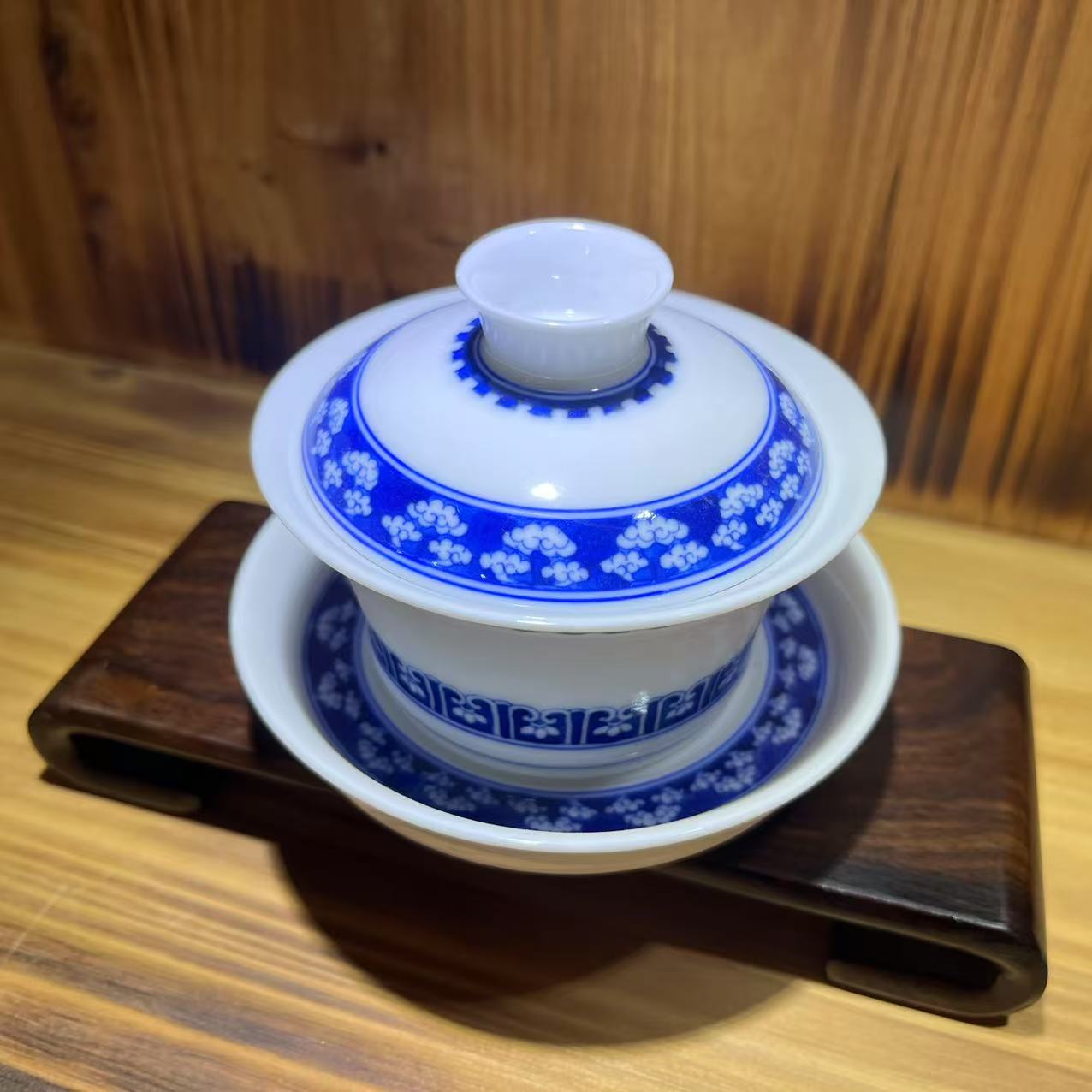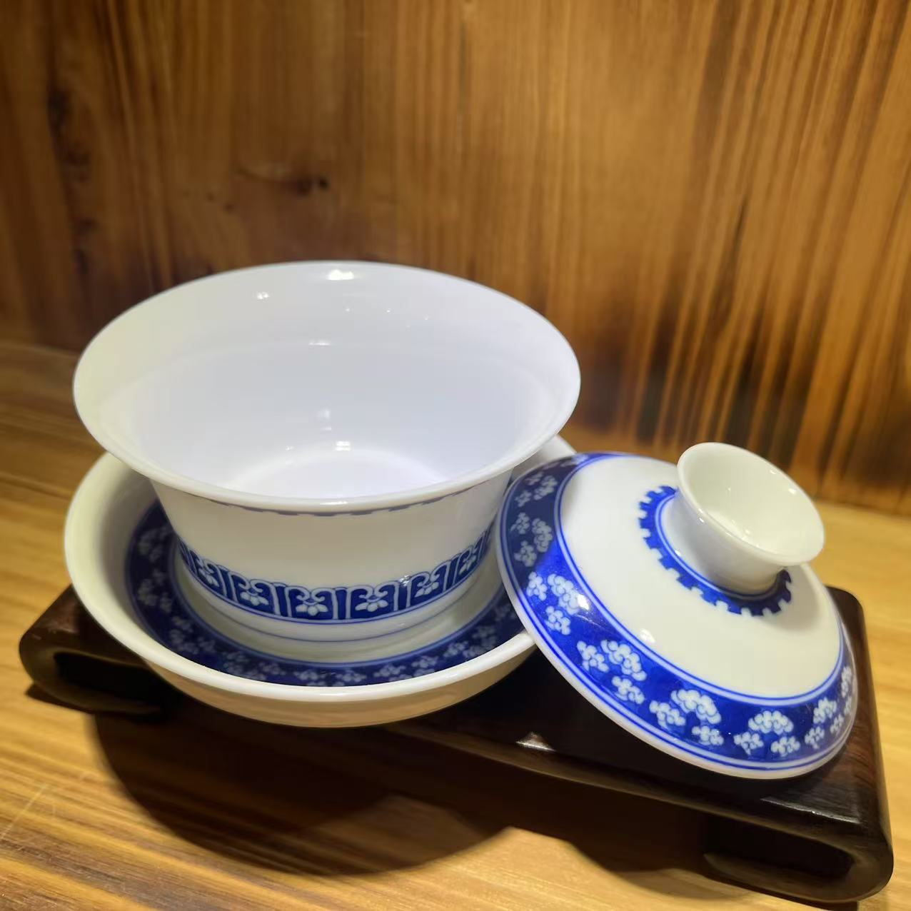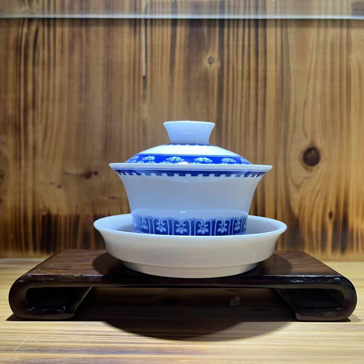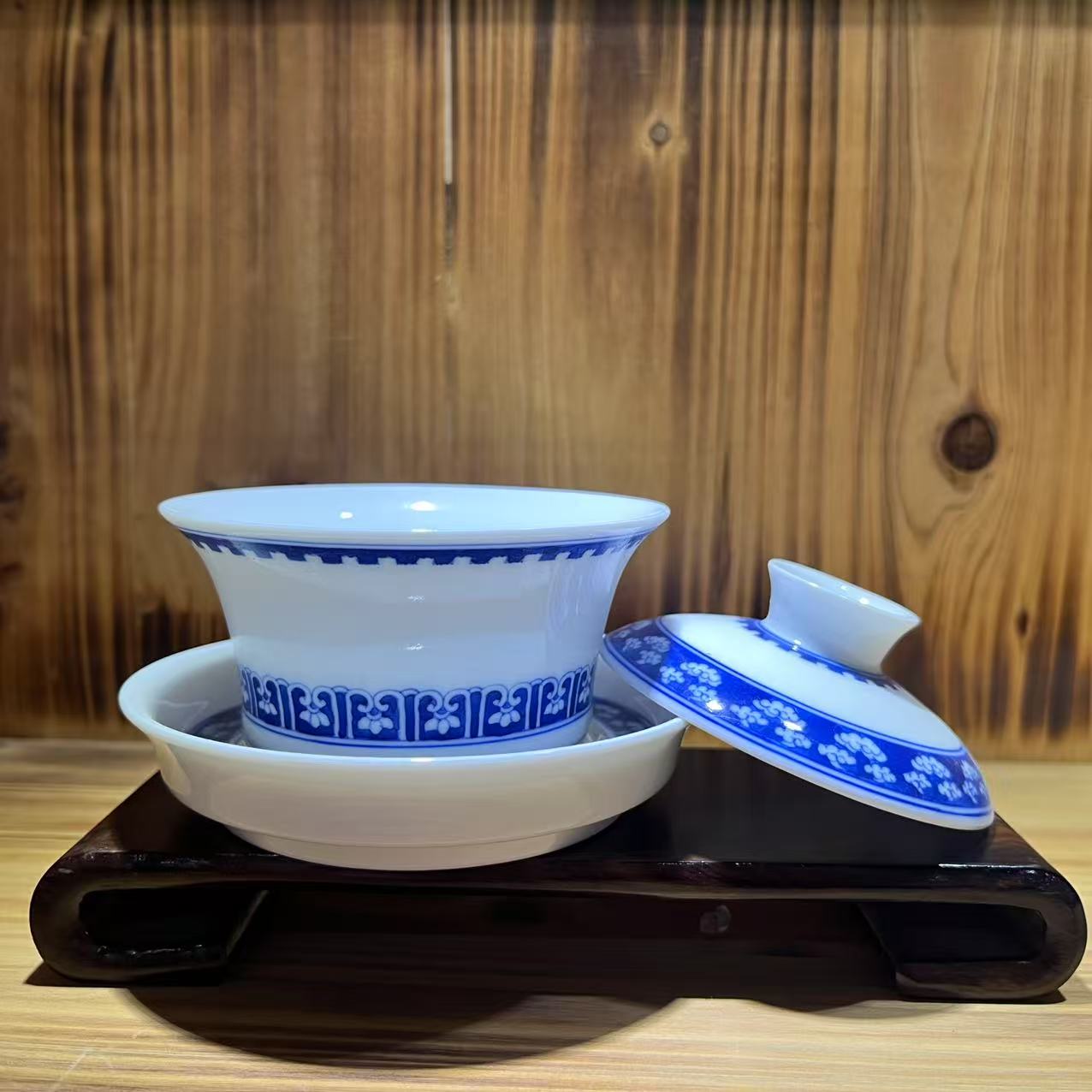 首页 / 茶器 / 盖碗系列 / 手绘马蹄三才盖碗(高:10cm 容量:120cc)