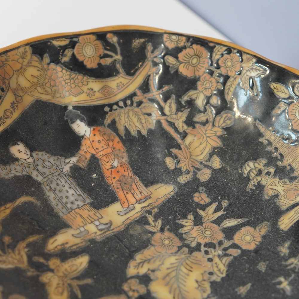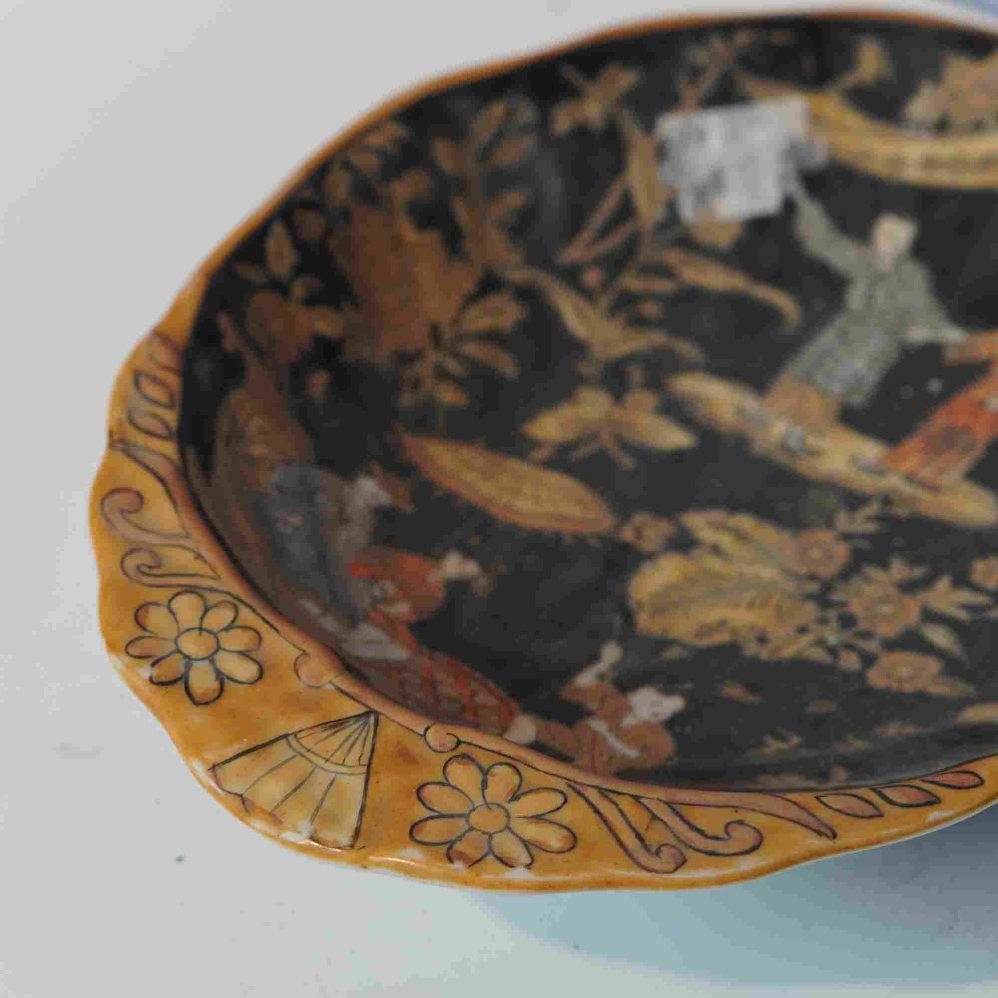 首页 / 徽章瓷 / 徽章瓷 / 广彩墨金纹盘(长:23cm宽:19cm高:5cm)