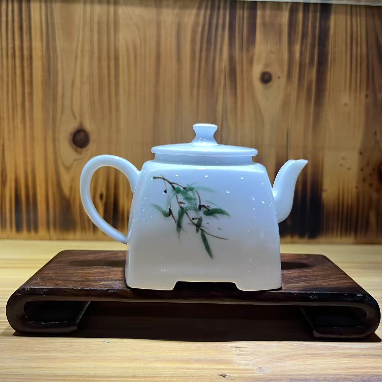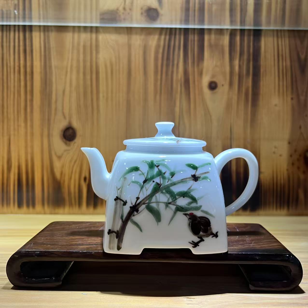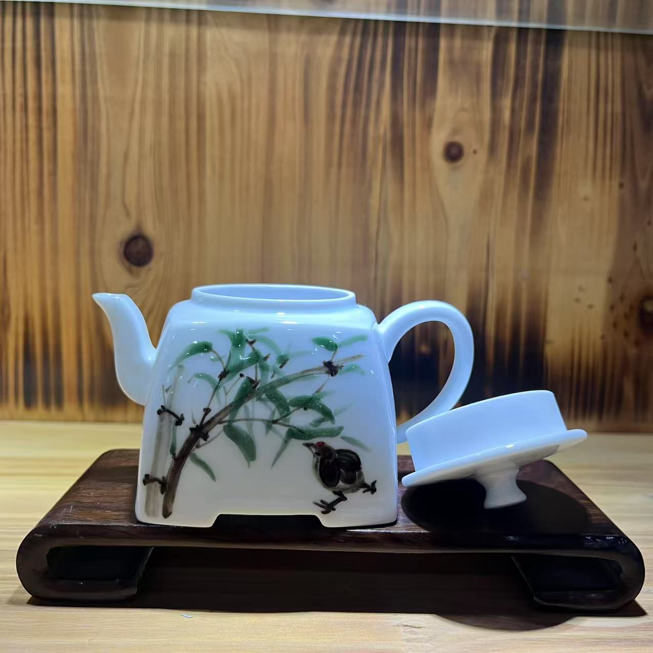 手绘青花竹茶壶