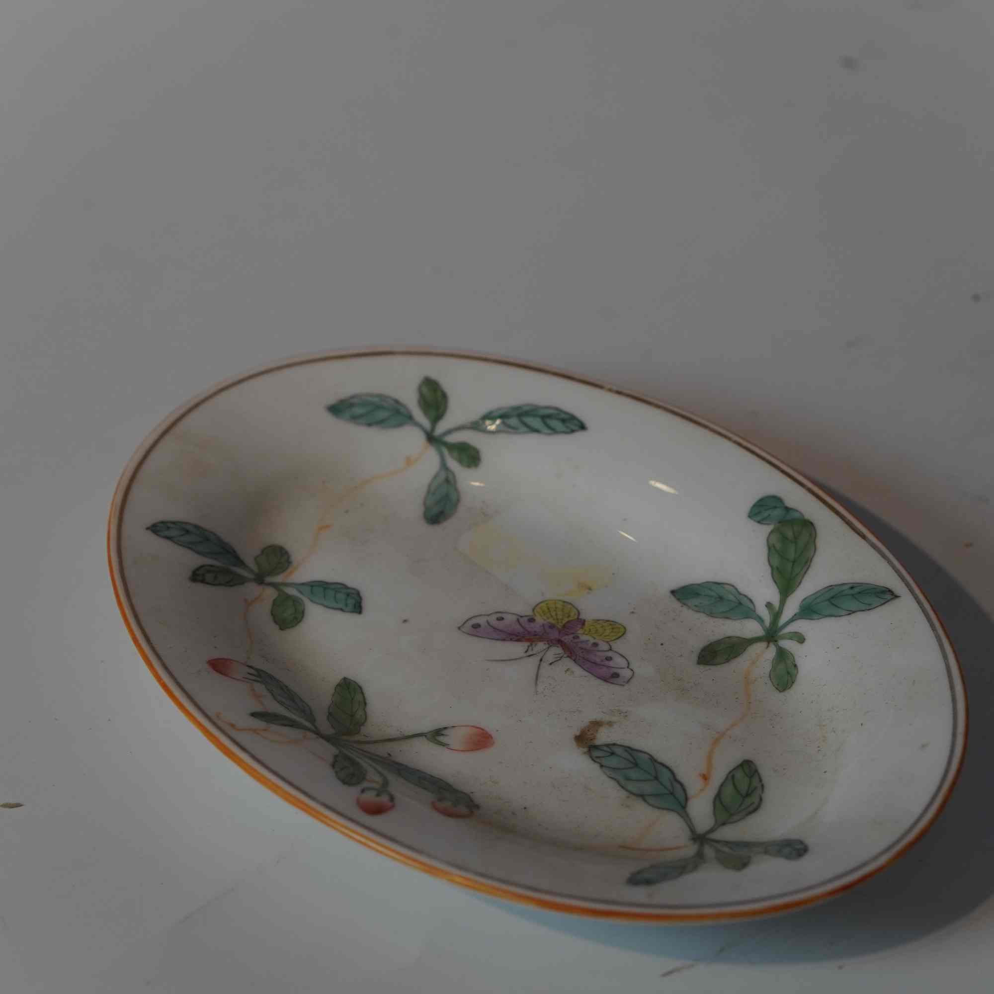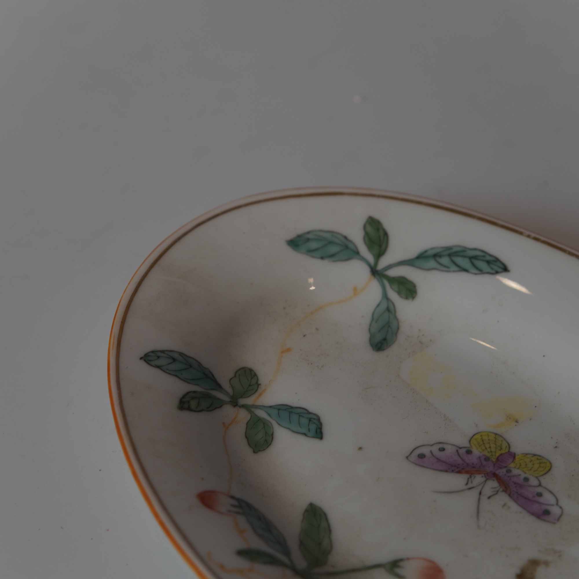 首页 / 徽章瓷 / 徽章瓷 / 蝶影翠韵粉彩盘(长:17.5cm宽:12cm高:2cm)