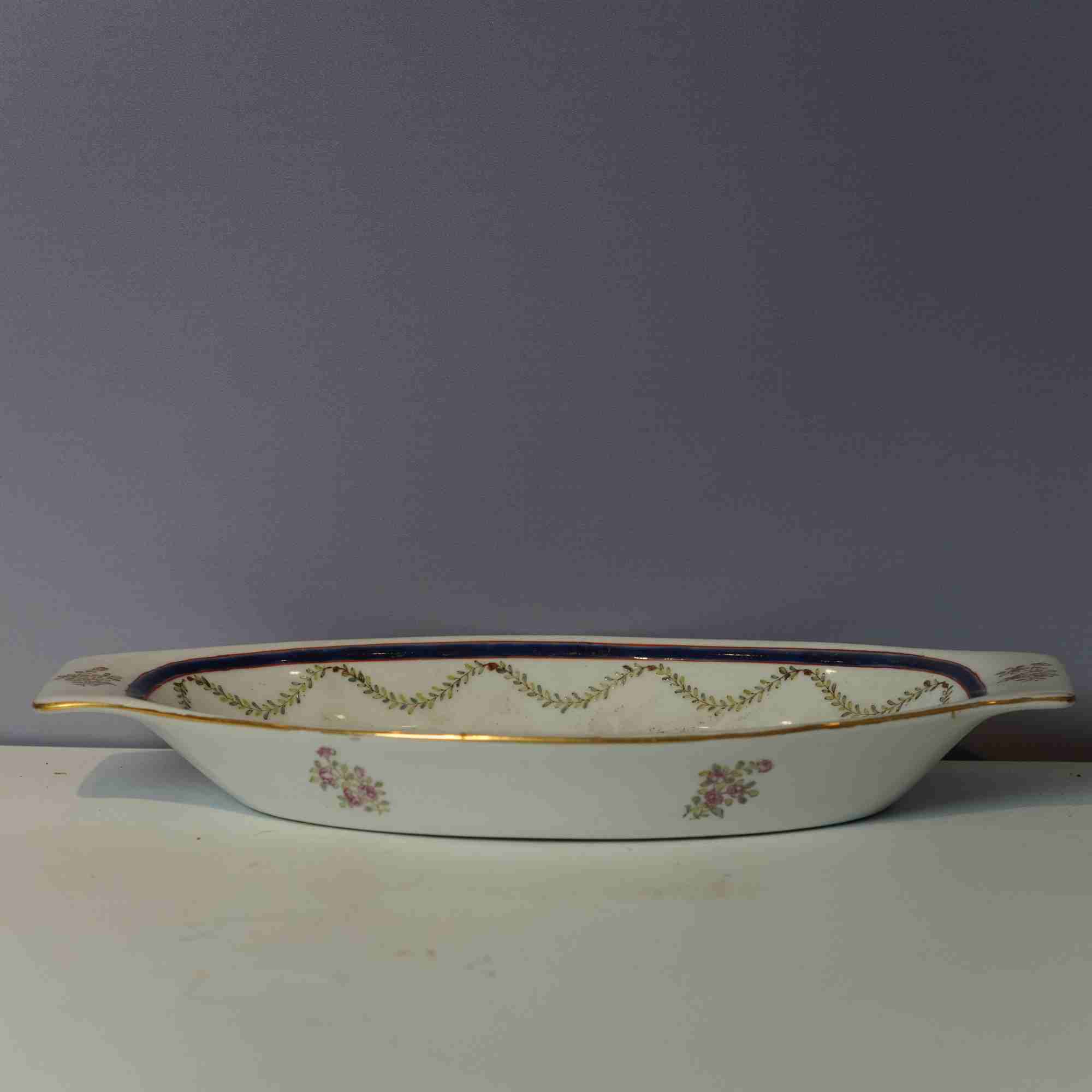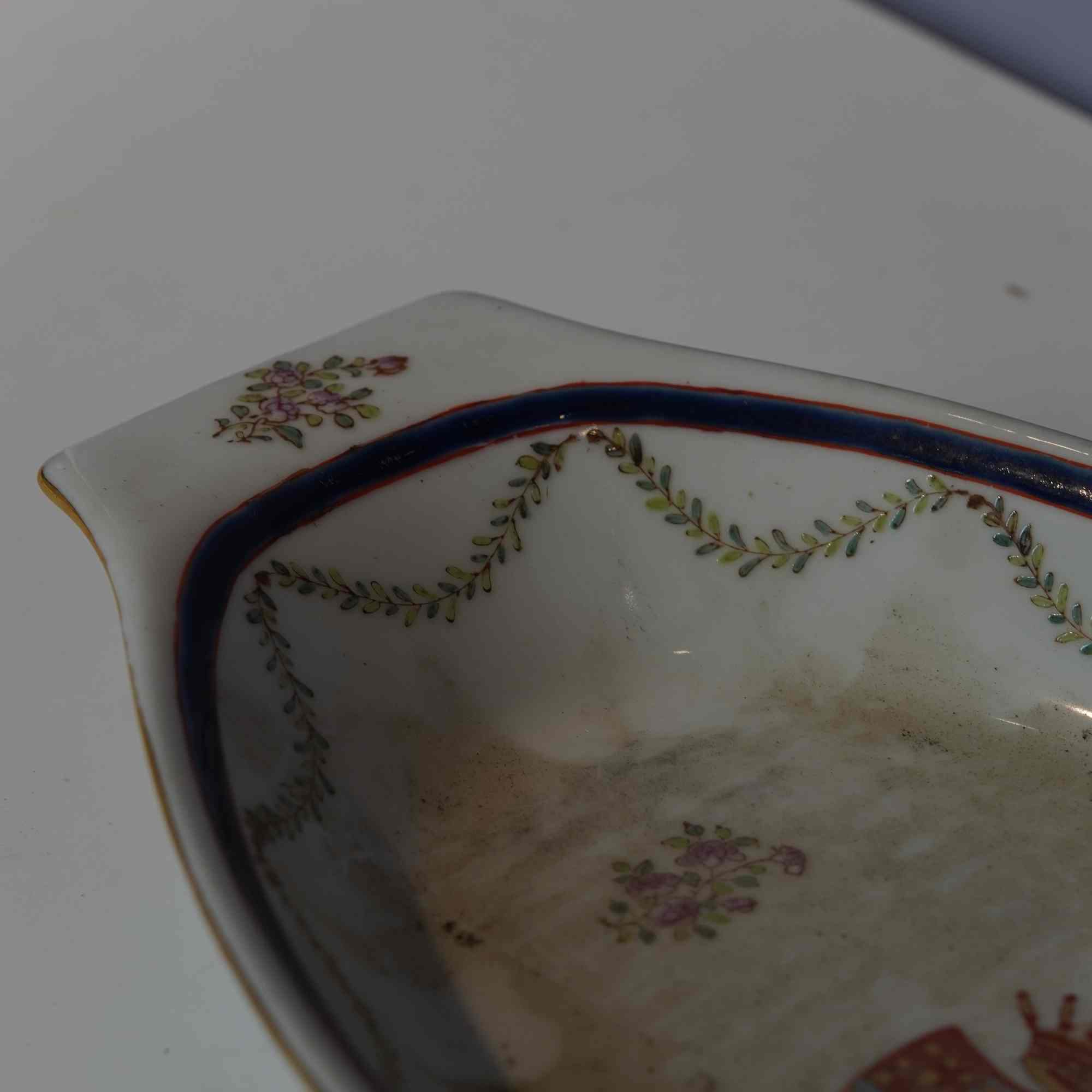 首页 / 徽章瓷 / 徽章瓷 / 金缘草虫粉彩碟(长:31.5cm宽:17cm高:3.5cm)