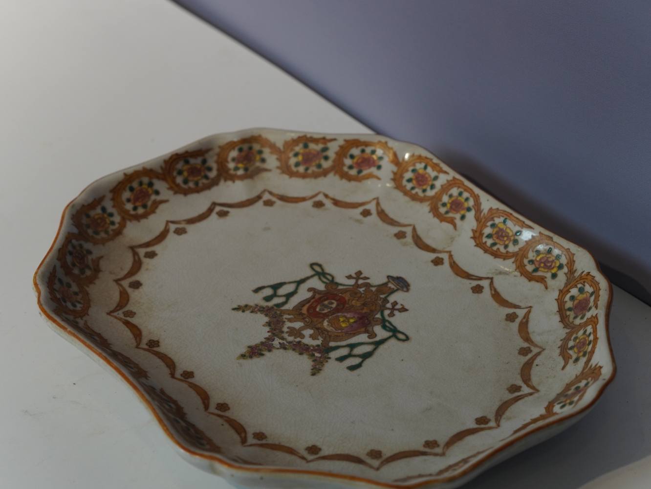 首页 / 徽章瓷 / 徽章瓷 / 金彩花卉纹异形徽章瓷盘