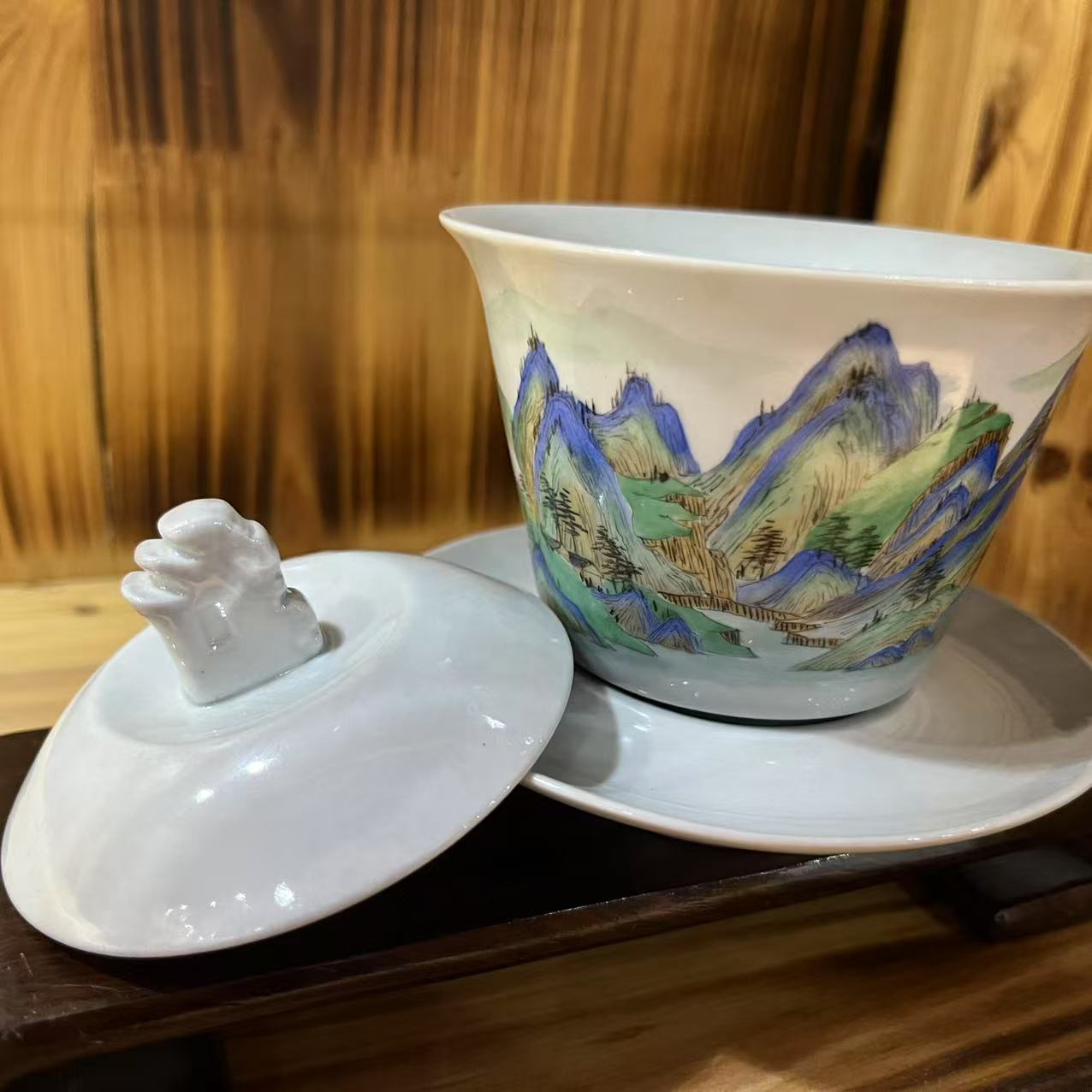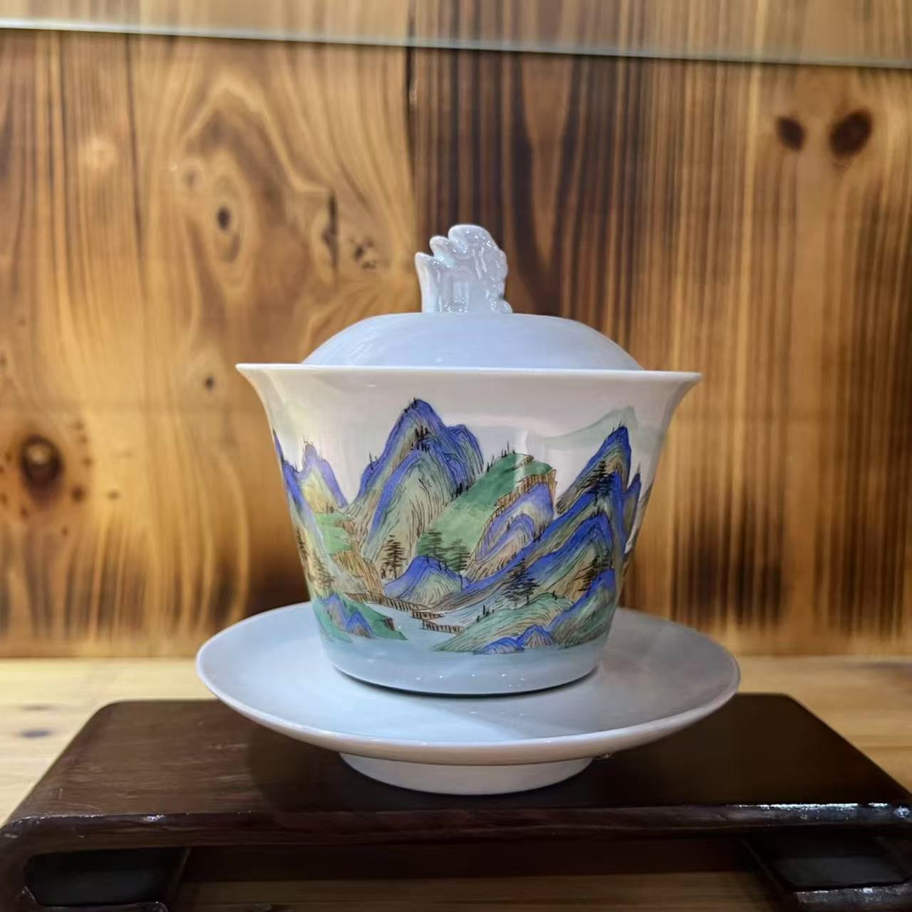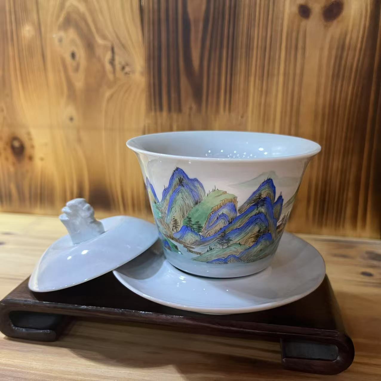 首页 / 茶器 / 盖碗系列 / 江山三才盖碗(高度:11.8 容量:175ml)