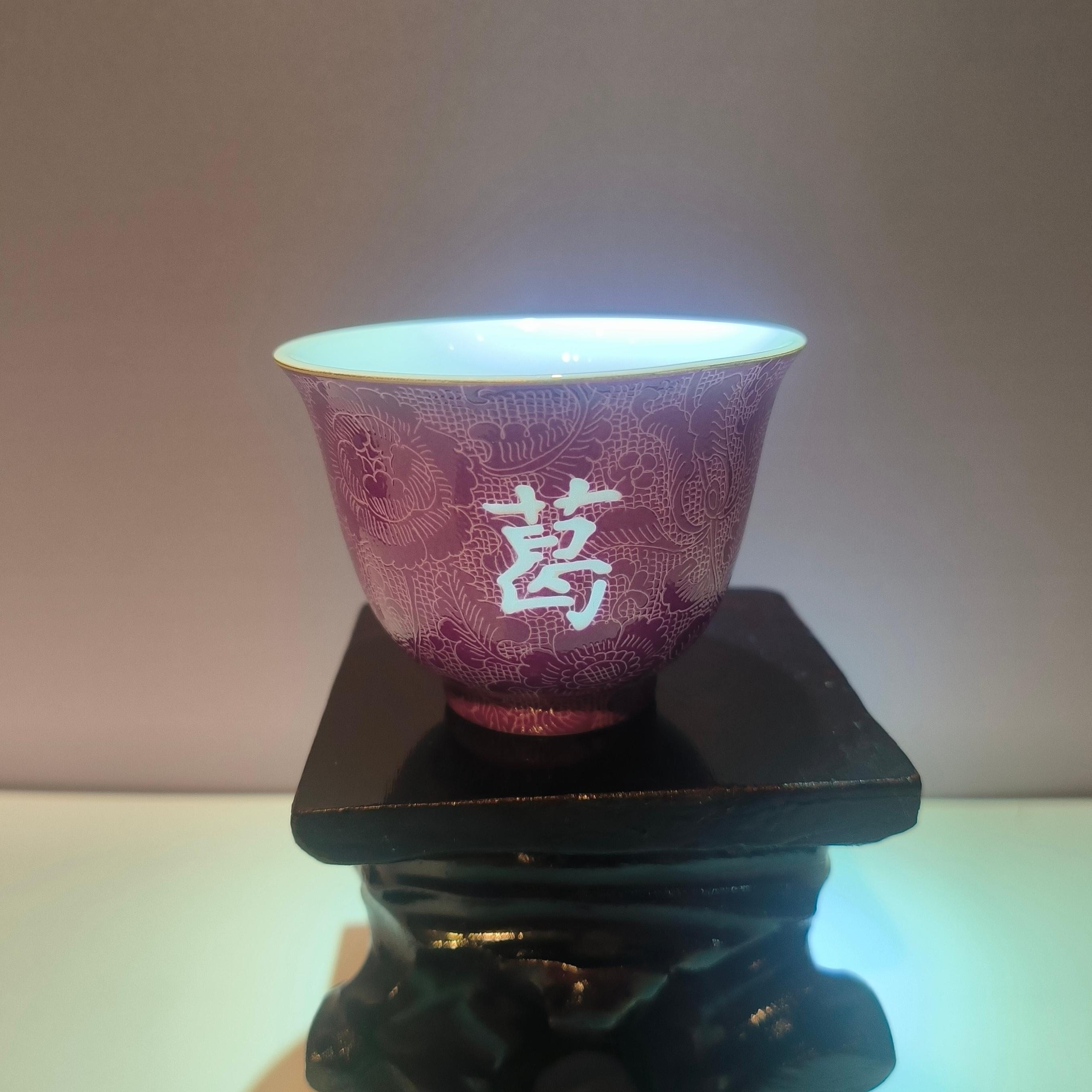 私人定制“葛”青花玲珑瓷杯