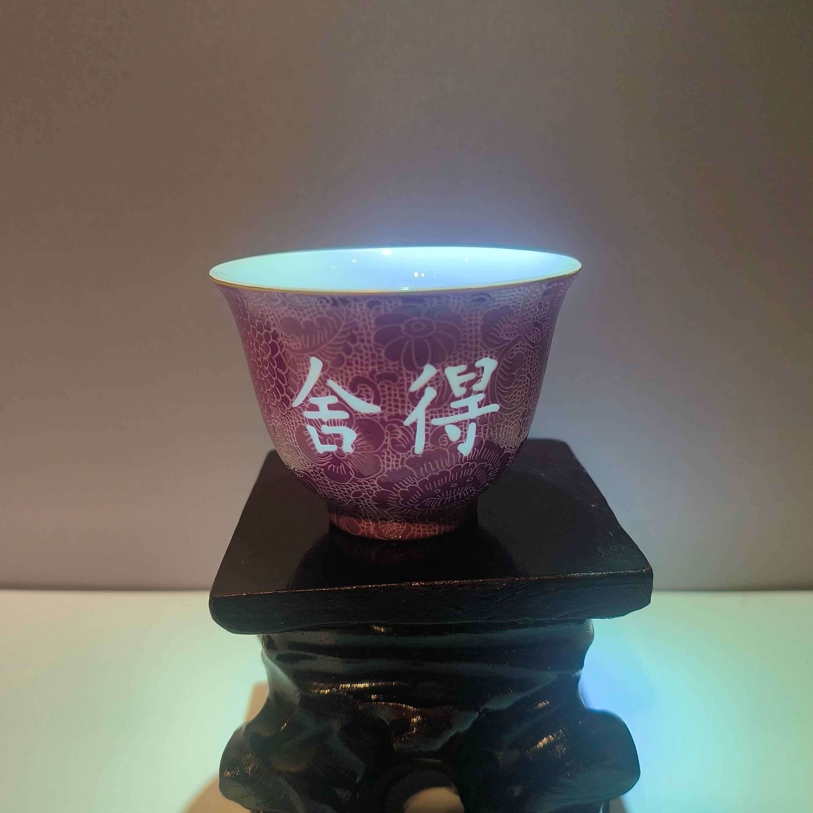 私人定制“舍得”青花玲珑瓷杯
