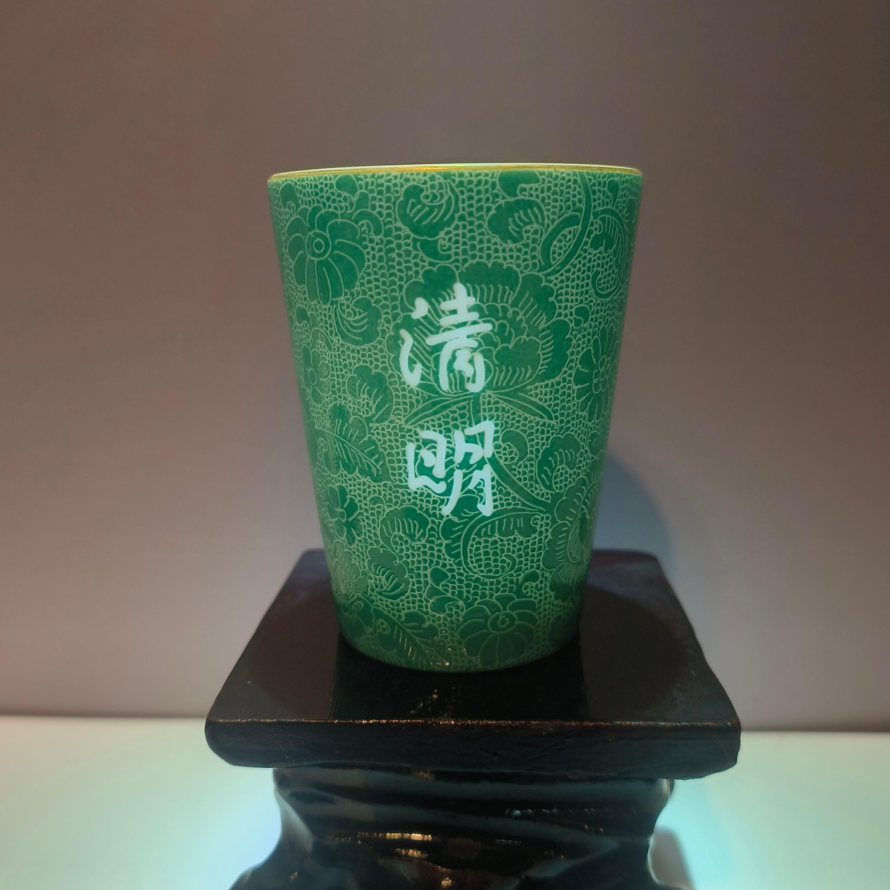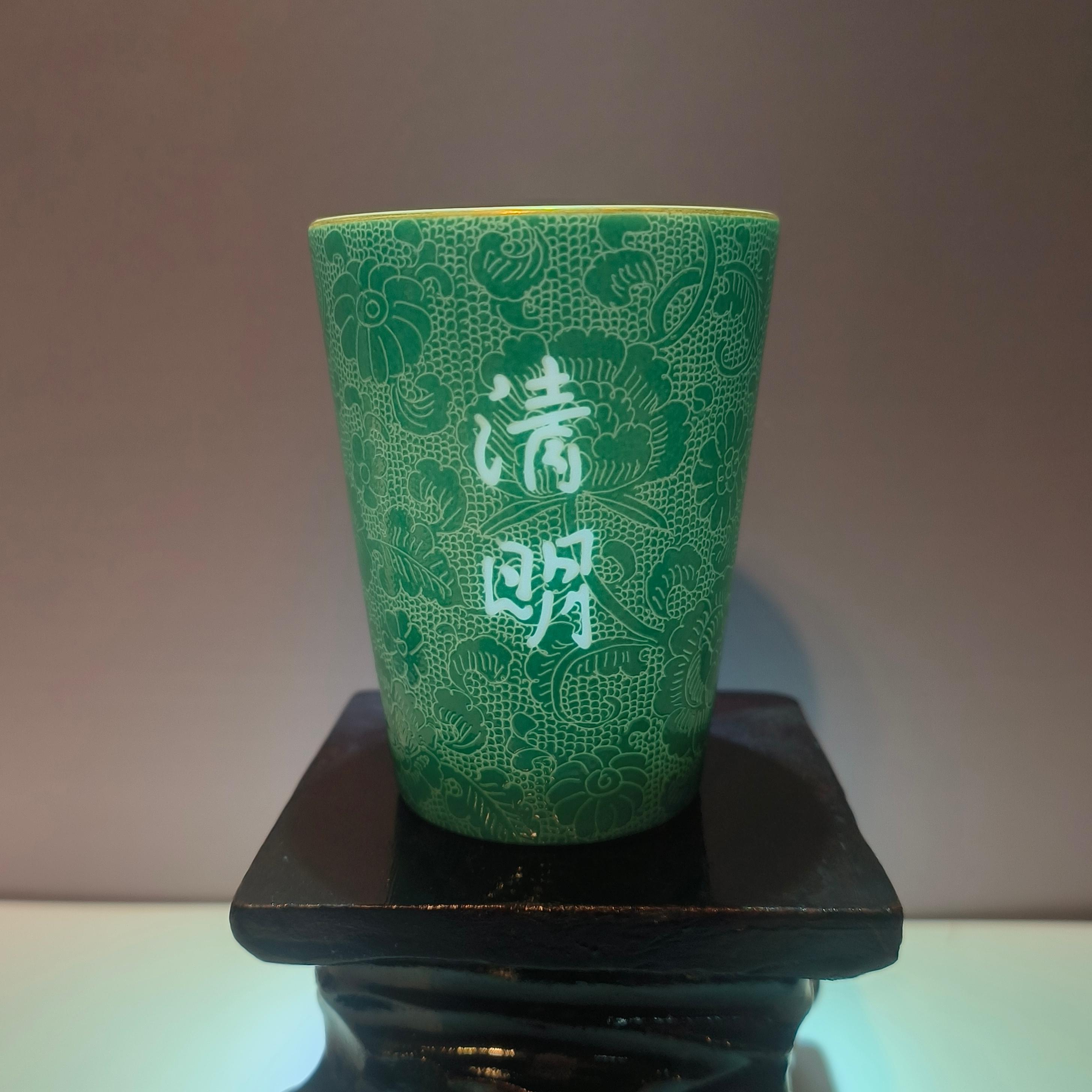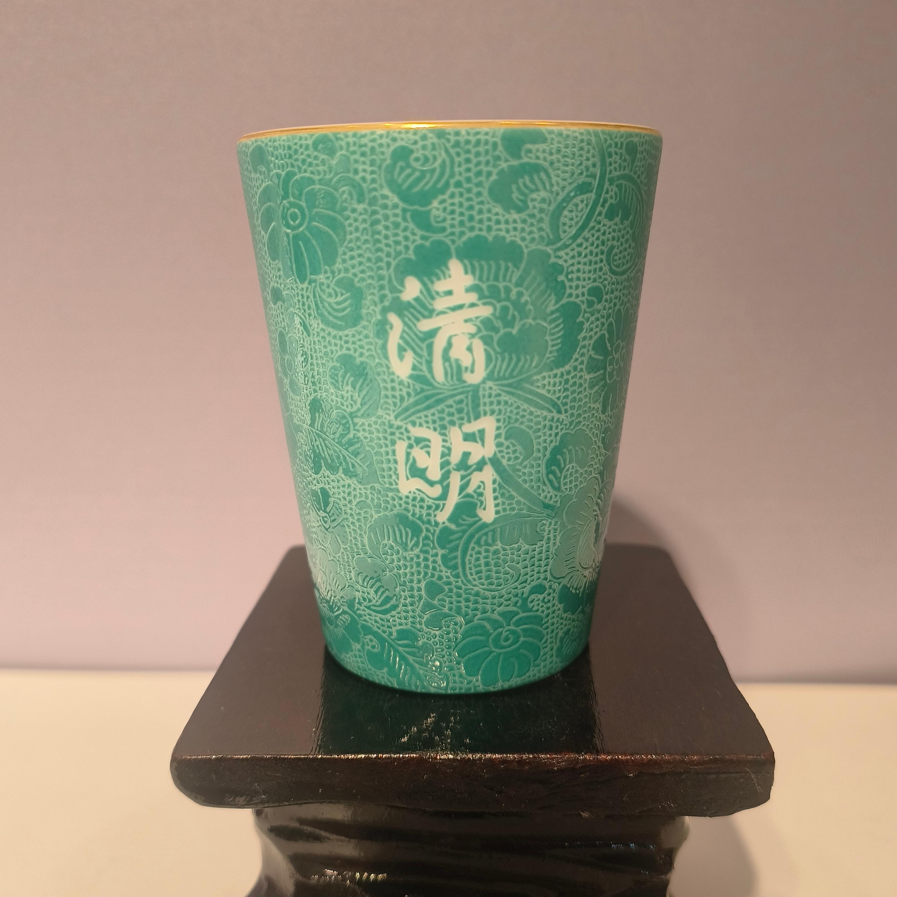 私人定制“清明”青花玲珑瓷杯
