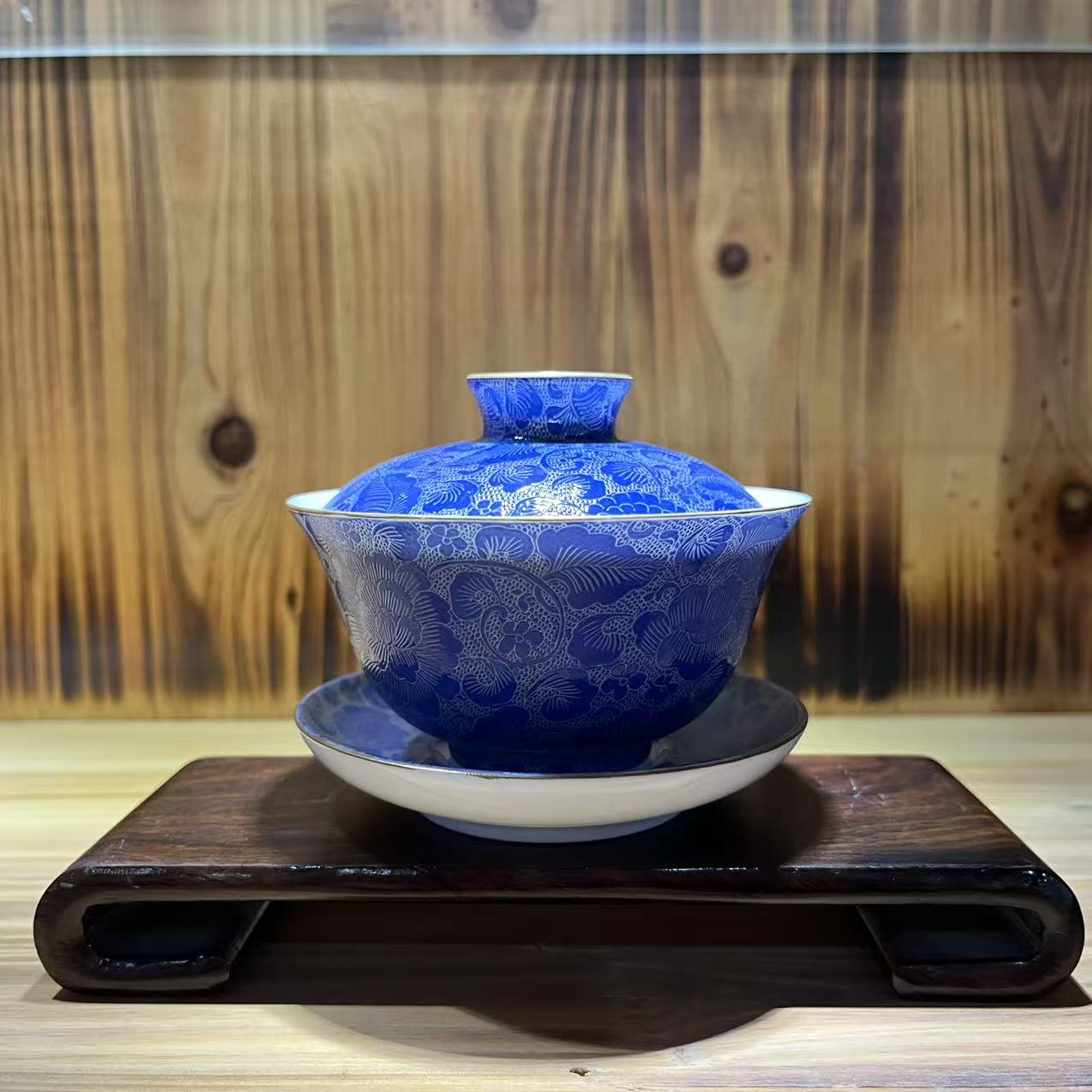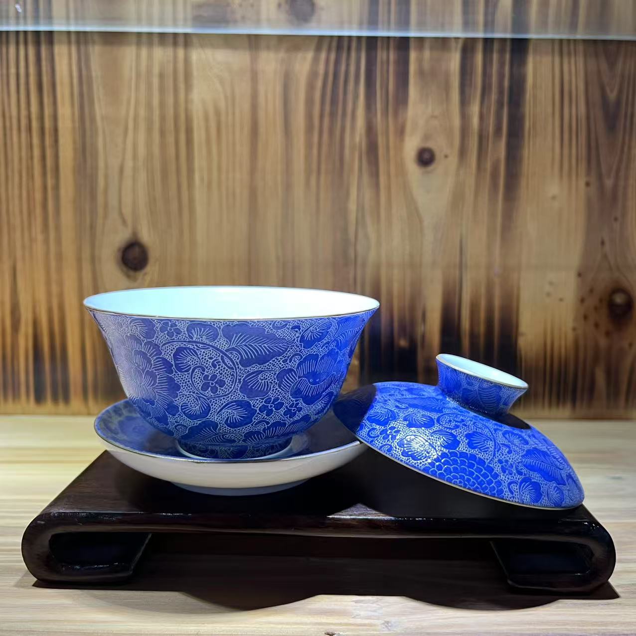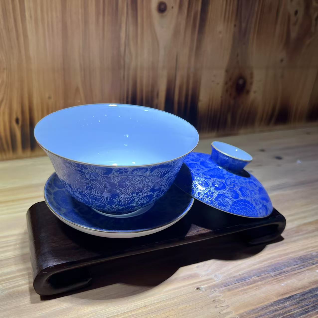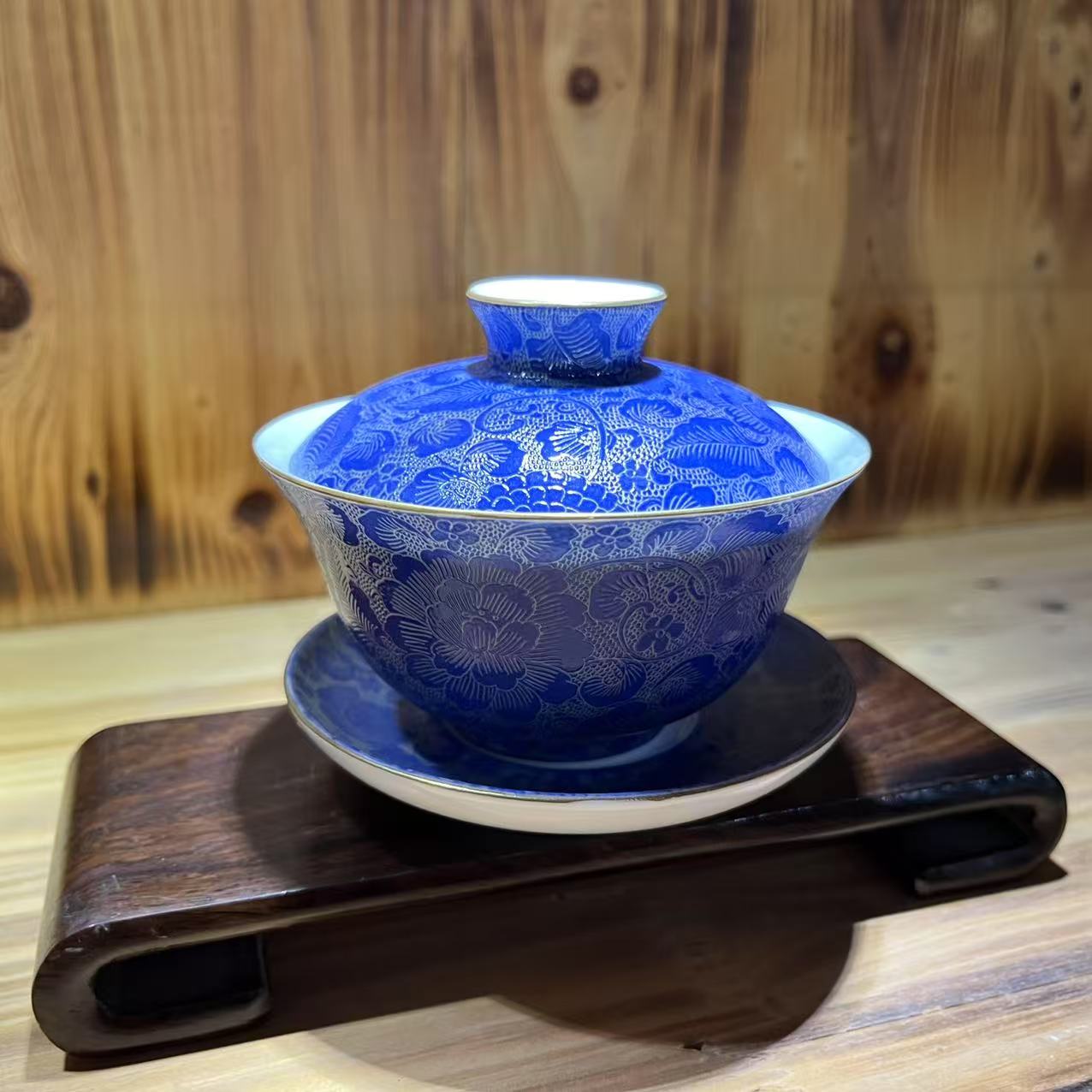 首页 / 茶器 / 主人杯系列 / 扒花三才盖碗(高度:9.5cm 容量:120ml)