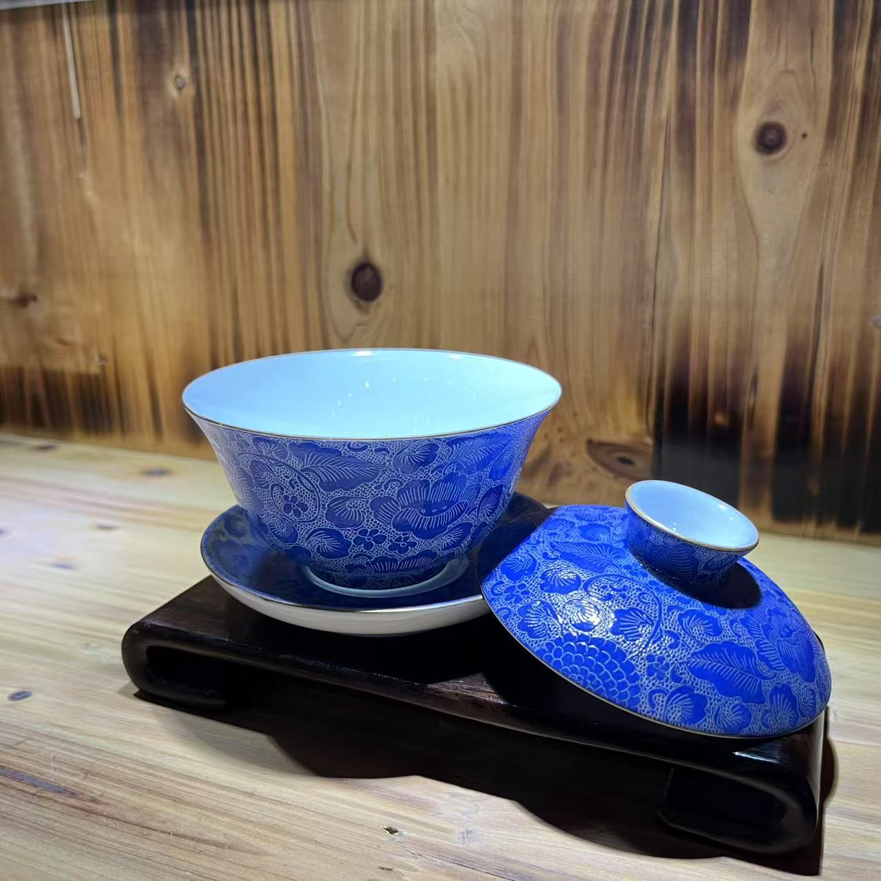 扒花三才盖碗(高度:9.5cm 容量:120ml)